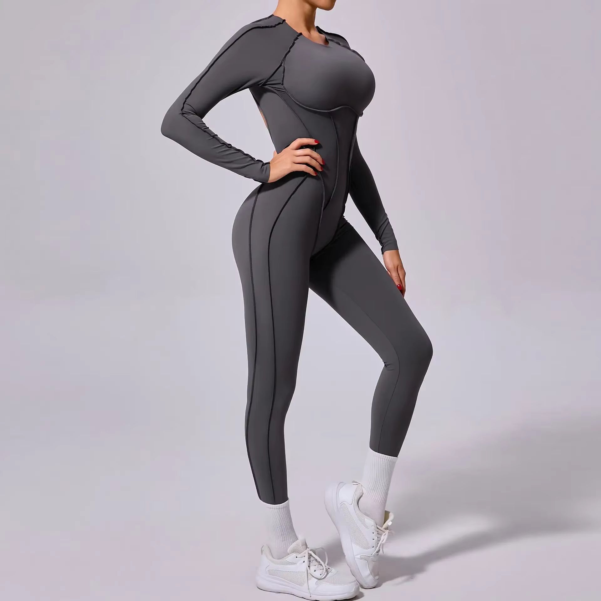 Crafted from lightweight, breathable, and high-stretch fabric, this jumpsuit keeps you cool during warm-weather workouts while allowing complete freedom of movement. Whether you choose the long-sleeve version for a streamlined athletic edge or the short cut for a bold summer statement, the result is the same: elevated performance with undeniable style.